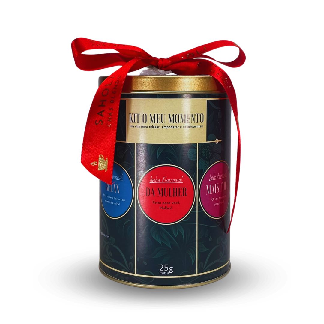 Lata composta por 3 Blends de chás, em saquinhos separados contendo 25g de cada .